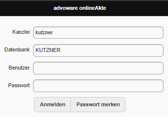 Alternativ: https://www.advo-net.net/oa/Login (evtl. ohne u.g. vorausgefüllte Daten zu "Kanzlei" und "Datenbank"; ggf. so nachtragen:)